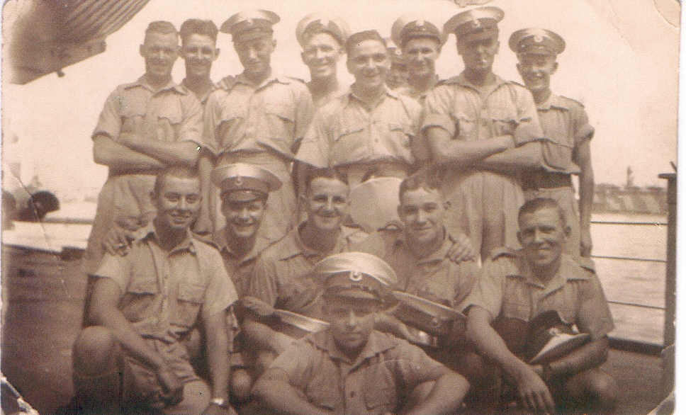 | This photograph was taken on HMS Kandahar. Les is to the left in the back row. The photograph does not have the names of the others so I have no idea of who they are. Does anyone recognise them? It would be wonderful to know. Bye Eileen |
